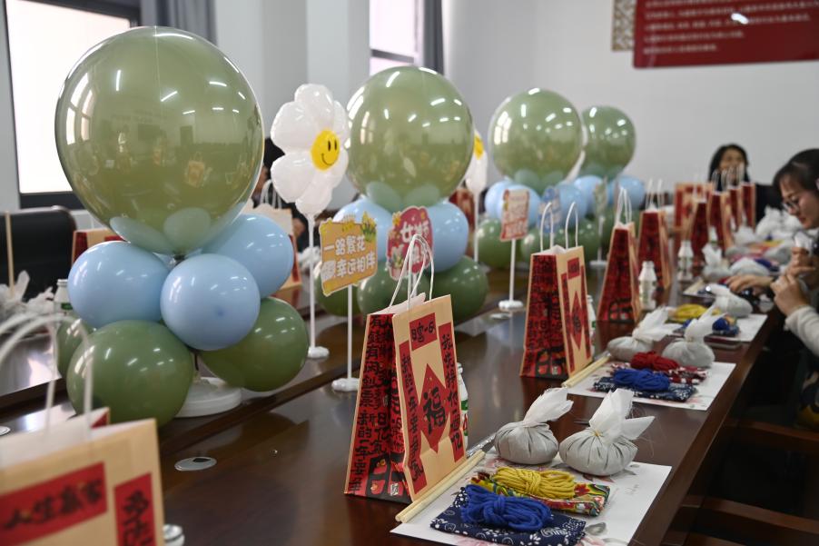 活动中,指导老师现场讲解了艾草锤的养生功效和制作方法。在老师的指导下,女教职工们动手实践,从填充艾草、包裹棉布到缠绕棉线,一步步完成了自己的作品。现场气氛轻松愉快,艾草清香阵阵。