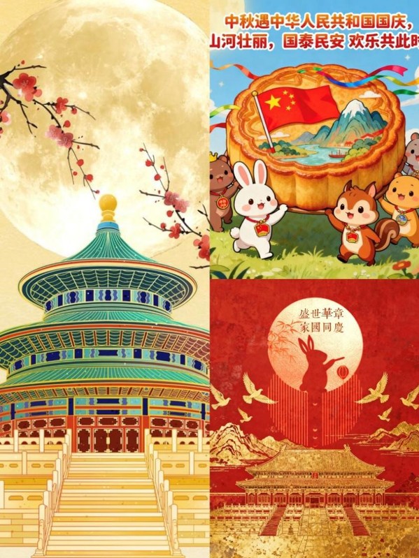 同学们通过不同载体传递家国情感。摄影作品既有国庆期间街巷挂满装饰、洋溢喜庆的热闹景象,也有“弟弟摘柿子”这样通过孩童调皮摘柿子、家人在旁守望的画面,传递出中秋团圆、家庭和谐的氛围;海报设计作品则注重中秋与国庆元素的融合,通过创意设计展现国家繁荣风貌,同学们将月饼、月亮等中秋元素与国旗结合,借助中华传统文化符号,清晰呈现双节同庆主题,还有作品把小兔子形象与天安门搭配,以“嫦娥奔月”的传统故事为灵感,用创意设计传递节日祝福。